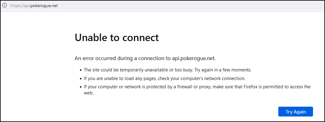 Once that is done I can test the redirect by going to ‘https://api.pokerogue.net’ in my browser: