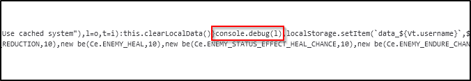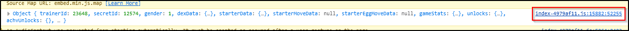 Seems to be confirmed. Let’s find the spot in the JavaScript code where this JSON object is getting printed out. If we look on the right side in the web console, it should give us the filename and exact spot where this log statement was made
